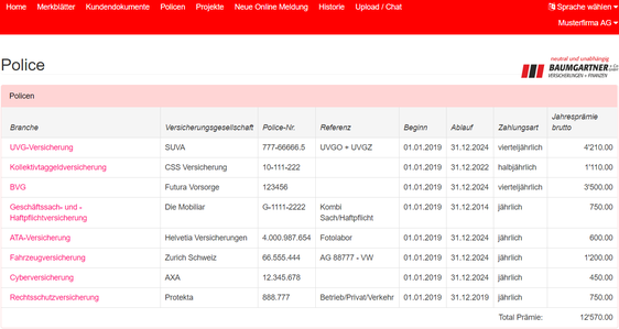 Ihr herkömmlicher Versicherungsordner wird durch den digitalen Versicherungsordner auf unserem Onlineportal ersetzt oder ergänzt (je nach Kundenwunsch).